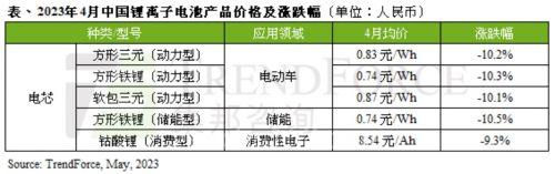 5 月 8 日讯,据 TrendForce 集邦官方发布, TrendForce 咨询研究显示 4 月中国电池级碳酸锂均价跌至每吨人民币 19.8 万元,月跌...