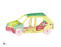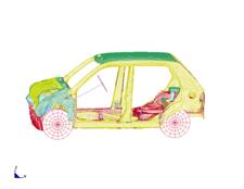 在建立整车仿真模型时,因涉及的零部件较多,故如何建立这些部件的数学模型和确定相应的结构参数,从而使模型的碰撞特性与实际车辆碰撞结果相吻合不但十分复杂,而且工作量很大。由于碰撞过程中,人和车的运动规律不同,再加上激烈碰撞时车身发生大变形并引起仪表板、前围板等零部件侵入乘客室内,减少了人体与室内物体的距离,也使问题求解复杂化。所以,汽车碰撞的计算机模拟研究宜用有限元方法研究汽车碰撞过程中车身变形及动态响应;若条件具备可进行人体在多种碰撞条件下响应的研究。