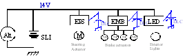 下表总结了现代汽车的汽车电气/电子系统的主要子系统(和负载):