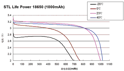 从图3中可看出,STL18650锂铁电池可以在-20℃下工作,但输出能量要降低35%左右。