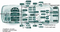 低速CAN多用于事件驱动的控制环境(125Kb/s),高速CAN(>500Kb/s),Flexray和Byteflight主要应用于时间驱动的同步高速控制环境,而D2B和MOST主要应用于汽车娱乐(图像和语音)的传输和控制。