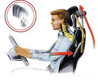 因此,Volvo公司在Volvo车上配置了一种称为WHIPS颈椎保护系统,它是由一个安全头枕和一个精心设计的椅背组成,可提供均匀的支撑功能。一旦发生追尾撞车事故,椅背与乘员一起向后移动,在稍微向后倾斜之前首先做平行运动。由于在椅背和坐垫之间的连接件上安装了可变形部件,使得从头枕、椅背和坐垫联结成对乘员躯体的支撑,从而进一步减轻碰撞力对乘员背部的冲击。