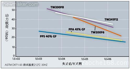 以100万次循环作为疲劳寿命,Stanyl PA46能够承受比其他材料多50%~100%的压力