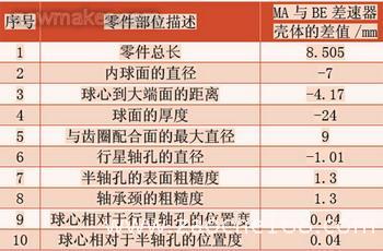 表1 MA和BE差速器壳体主要技术要求的差异