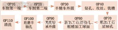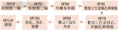 国外的工艺方案与我们自行设计的工艺方案的最大差别体现在4个部位:半轴孔、两端轴承直径和法兰面的加工。在法国,对于半轴孔的加工采用珩磨,而对于两端轴承颈和法兰面的加工采用的是磨削。