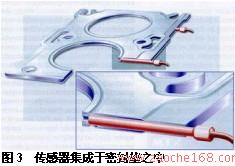 从原理上说,信号质量主要受到传感器位置的影响。在燃烧室上布置一个密封得好的传感器,对燃烧压力最为有利。现代化的发动机结构由于采用了多气门技术和复杂昂贵的气缸盖通道,所以几乎没有空间可以安装传感器。金属层迭式气缸盖密封垫作为靠近燃烧室设置的功能性元件而成为压力传感器的替代性的安装地点,以这种方式能够避免在发动机的结构中钻出专门为传感器设置的孔。将压力传感器集成于气缸盖垫的目的是: