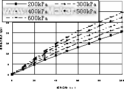 当胶囊内压从200~600Kpa时,相应的载荷-位移变化曲线见图5。