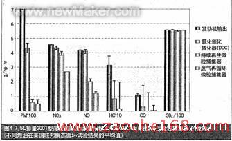 用DOC或DPF对现有的车辆进行改装从成本有效性看非常不错,可以认为是柴油机车辆清洁化的首选措施。为说明成本有效性,假设一辆7L排量的1985型柴油机大客车的排放量约为1g/kmPM,每年行驶50000km。在该大客车上安装一个DOC会花费700美元,但将去除50%或更多的PM。这样,每年去除每吨PM的成本低于28美元。如果该柴油机由一台价格约为15000美元的新的天然气发动机来取代,而且97%的PM被去除掉,则每年去除每吨PM的成本为306美元。用另一个角度看,同样的成本,用DOC改装可去除超过11倍的PM。在另一个例子中对于排放量为0.5g/kmPM的1995型柴油机大客车来说,增添90%效率柴油机微粒捕集器会花费5000美元,但天然气发动机的价格是15000美元。DPF去除PM的成本是222美元/t,而天然气发动机的去除PM的成本是618美元/t。上述例子表明花相同的钱,用DPF更新可取得2.8倍降低PM的效果。天然气发动机与柴油机大客车都将变得很清洁,而对于某些有害物来说,柴油机大客车会更清洁些。