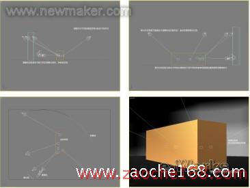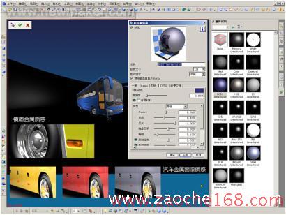 C、体现产品效果的关键是高光位和灯光。高光位是体现金属和层次感的关键。高光通常是一块弯曲的曲面,发光的材质。放置位置通常为摄像机的后部,至于摄像机设定的高度和透视距离希望体现实际的数据,例如:离地1600mm,透视距离为离车体的13000mm,灯光、重点体现于产品反映出地光影现象,我一般设置于5个灯源(有时候会使用更多灯源,更有效补光),全部用于锥形聚光灯,其放置位置大致为右后45°、右前45°、左前50°,右侧70°,产品背景打灯,5个灯源分别设置不同强度,以深浅的光影反射于产品得到更真实的效果。但至于更真实地效果制作,我也在努力研究学习中。如何在这方面更进一步我也正在摸索之中。