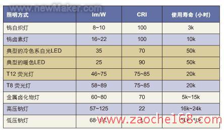 但是,LED会随温度与电流的变化而改变颜色,这点是否会影响汽车照明应用仍有待探讨。LED的频谱是否适用于照明,在一般夜视效果下是否会影响驾驶者的距离感,这些问题可能更加重要。