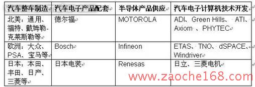 表1:国际汽车发动机电子控制系统产品链开发、配套格局