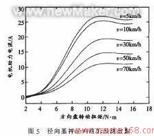 通过径向基神经网络学习及数据的训练,我们得到在所给速度范围内任意速度值及任意的方向盘力矩下所对应的助力电流大小(助力方向与方向盘力矩方向相同)。这样我们就可以获得所给区域中任意一点的助力转向的助力电流,即得到了电动助力转向系统的助力特性曲线。