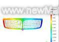 (2)熔接痕位置分布图(图 10)。熔接痕是在料流相遇处形成的。从图中看出熔接痕大部分分布在料流最后填充部位。从零件整体看,中间格栅部分和外边缘处熔接痕较多(外边缘约九处),图中深色点表示该处熔接痕的质量不好。这与现生产中的情况相符。
