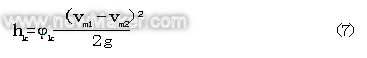 叶轮进口前无叶片区的过流断面大于进口后的过流断面。叶轮出口过流断面小于出口后无叶片区的过流断面。在叶轮进口处有突然收缩的损失, 而在出口处有突然扩大的损失。这是叶片排挤而引起的。这些损失根据文献 [3]的公式计算: