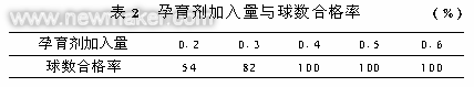 球化剂的用量直接影响残余镁量的多少。如果球化剂加入量过多,就会引起残余镁量过多,虽然不致于影响球化合格率(球径大小仍属正常),但是它会增加收缩,引起脆性。同时由于原铁液含锰量偏高,球化剂加入量过多,较易出现碳化物,白口倾向严重,导致球数合格率的下降;如果球化剂加入量过少,就会导致残余镁量不足,影响球化的合格率,球数合格率也会降低。表1是在正常试验情况下的结果,并说明如下:①球化剂加入量1 4%时,由于残余镁量不足,出现蠕虫状石墨;②加入量1 8%时,由于残余镁量过多,出现碳化物,导致球数下降,不过二者球径大小仍合乎要求;③球化合格率非球化率。