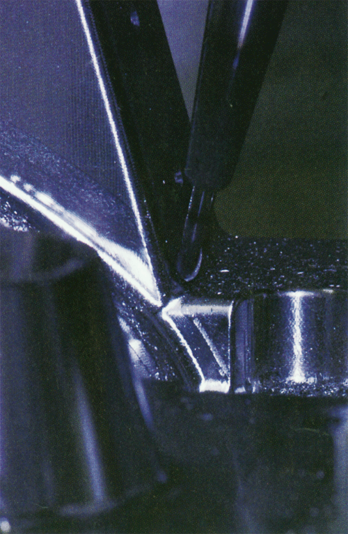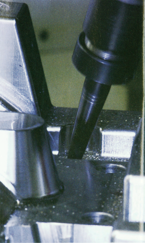 与特殊工件如涡轮叶片、机翼面和推进器的五轴功能不同,模具制造者没有必要“垂直”切削CAD文件中所示的所有面,他们只须简单地旋转足够的倾斜角以自动消除刀具、锥柄和工件间的振动即可。图5显示了自动刀柄振动消除和较多形式的切削方式的组合使五轴模具加工具有更高的效率和柔性。