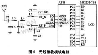 接收电路由无线收发芯片CC1100和AT48组成,如图4所示。