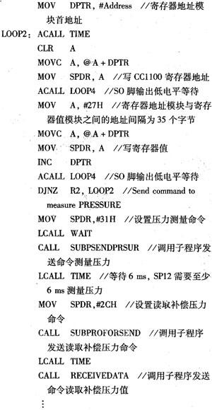 CC1100和AT48通过SPI口进行数据传输。在接收状态时,由SCLK作为同步时钟,CC1100收到有效的数据信息,将数字信号送给AT48的SPI口。AT48将接收到数据进行译码,从数据流中提取各轮胎的温度和压力值,然后作出相应的处理,如更新当前温度和压力值、声光报警等。在接收之前,AT48通过对SPI数据寄存器SPDR写相关数据,对CC1100进行初始化和配置相应寄存器,然后等待接收数据。