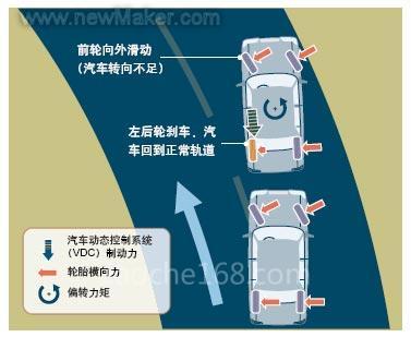 但是电子稳定控制系统在事故因素产生前就制止了危险事故链的产生。通过刹车控制特定的轮胎方向,以制止车辆偏转情况的产生。