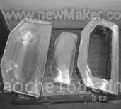 首先翻制凹模的石膏反模。然后将石膏反模放入金属模框中,用Zn-Al伪合金喷涂型面至1.5~2mm。再浇铸背衬材料,待凝固后获得凹模快速模具。