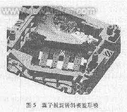 由于外覆盖件(如前盖外板、车顶、翼子板)都需进行复杂的翻边整形或预卷边工艺,这就使得在模具结构设计时,必须考虑冲压件成形后的取件问题,目前,人都依靠复杂的多斜楔机构联动来实现模具工作部分对零件让位,以实现方便取件,由此造成整个模具的结构十分复杂。