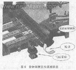 目前,新车型的很多外覆盖件,如翼子板(图5)前盖外板、车顶等的翻边整形工序中,采用了一种称之为“旋转斜楔”的新工艺。其工作原理见图6,旋转斜楔上的凹槽部分是冲压件需整形的区域,当整形过程完成后,气缸驱动的托架推动旋转斜楔绕滚筒转动,从而达到对零件让位的目的,方便整形后的零件从模具上取出。旋转斜楔的优点是:因整形部分与冲压件托料部分的拼接处非常光顺,故零件上无明显压痕;模具结构简单;维修保养简便且费用低。