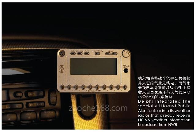 Effective coverage The All-Hazard Public Alert radio system can broadcast warnings for both severe weather and non-weather emergencies using the NOAA All-Hazards Weather Radio (NWR) network, which includes 985 stations and covers roughly 98 per cent of the US population. The all-hazard signal interrupts AM/FM, satellite radio or CDs when an emergency message needs to be broadcast. The emergency alert is sent by specific area message encoding (SAME) digital code technology on the weather broadcast system. The system provides users with county or parish codes that can be selected to ensure the alers are only issued in the geographical area where they are applicable. “We believe that the All-Hazard Public Alert radio can increase the effectiveness of getting out emergency warnings,” says Mark Paese, NOAA director of operations and homeland security. “Many vehicle makers have already adopted weather band radio; the public alert feature is the next logical step up to increase the warning capability.” Delphi integrated the special All Hazard Public Alert feature into its weather radios that already receive NOAA weather information broadcast from NWR. Using GPS signalling, Delphi’s proprietary NWR receiver knows which of the seven NWR frequencies to tune into. By using existing hardware, Delphi is able to produce the radio at a modest cost while still meeting all consumer electronics association (CEA) certification and technical standards. “Since consumers are always interested in improving safety and staying informed it is no surprise that the feature scores as an item that they would purchase,” says Erickson. Since beginning production in 1936, Delphi has manufactured more than 283 million radios, including 18 million satellite radio systems, and introduced an array of new technologies. 参考译文: 在美国拉斯维加斯举行的国际消费类电子产品展会上,德尔福展示了各种突破的技术,其中就包括了一款移动无线电产品。">