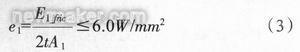 [e]——能量负荷上限(W/mm2),一般取为6.0W/mm2;E1_fric——制动过程中制动器吸收的热量(KJ),见式(3);=100/0.6g——制动时间(S);A1——制动衬片工作面积,用下式计算: