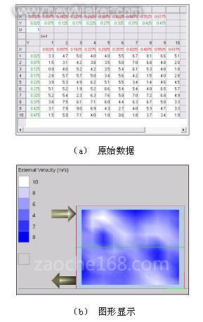 在AMESim中可以以数据表格的形式设定迎风边界条件,在边界网格内输入该点的边界值,网格与网格之间设定不同的数值,这样可以真实地设定发动机舱流动的边界条件。图8为轴对称双风扇所产生的速度边界场。在AMESim中一共有两种边界条件可供用户设定:速度边界和压力边界。速度边界适合诸如汽车发动机舱等结构紧凑的布置形式,此时各处的速度场较易确定;压力边界适合布置距离较大的形式,如图9所示。