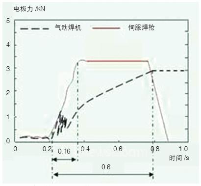 图2 气动焊枪和伺服焊枪在焊接过程中电极力的变化