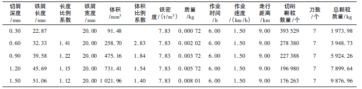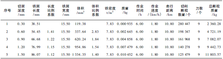 从理论和实践两个方面对铁屑质量做了对比分析,从而为铁屑收集系统的设计和优化奠定了理论基础。铁屑质量的研究不但为铁屑收集系统的设计和铁屑收集箱的设计起指导性作用,还为作业过程中整车轴重变化对整车的平稳性和安全性评估提供理论依据。所以,铣磨车铣加工钢轨的铁屑参数分析研究具有现实意义和应用价值。