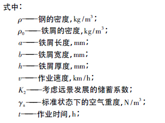 从调研得到的表2 中可以看到,收集到的铁屑质量比较精确。由于线路本身的破损情况不同,另外作业和排卸过程中小部分铁屑遗失,所以相同作业时间下,得到的铁屑质量为9 000 ~ 10 000 kg。理论计算得到的铁屑质量为9 876. 96 kg。两者较为接近,说明对单个铁屑和铁屑物料的计算方法可行。这也是铁屑收集系统计算的重要参数。