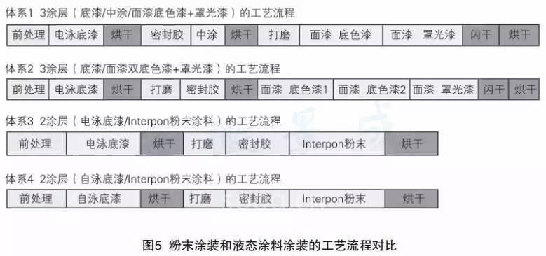 采用Interpon超耐候聚酯粉末涂料粉末涂装可以简化涂装工艺,见图5。