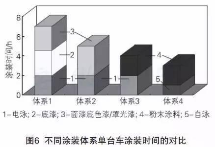 不同涂装体系涂装某相同车身所需时间的对比见图6。