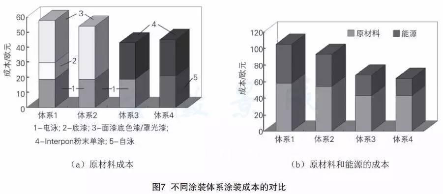 不同涂装体系涂装某相同车身的成本对比见图7。