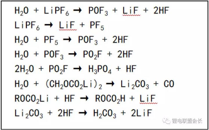 目前常用的锂盐为LiPF6,对水分很敏感,一旦接触水分就会发生反应,造成产气,电池鼓胀,循环衰减严重等问题, 20~60℃温度范围内,在3种混合溶剂中LiPF6与水的反应速率常数k大小为:EC+DMC