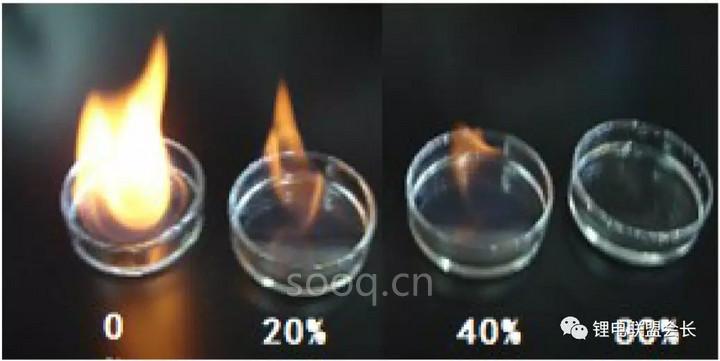 再添加了阻燃添加剂后,明显看出再添加一定量后电解液已经不可燃了,给高能量密度的电池带来一定的安全保障。