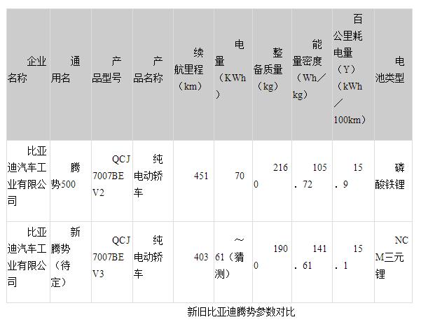 不过腾势500刚做完宣传,新款的腾势就出现在了工信部的名录上,最大的变化就是新腾势采用了三元锂电池,而非磷酸铁锂。(参考阅读:2018年第三批推荐目录乘用车分析)