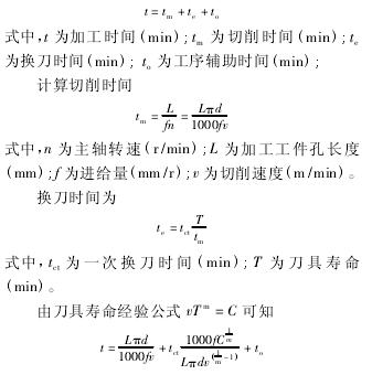 作为深孔加工技术最常用的加工方式,深孔钻削生产效率的提高具有很高的经济性。以最大生产效率为目标函数,加工工时模型为