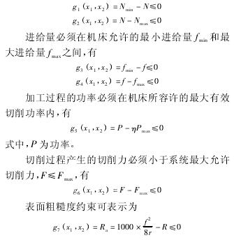 由于在深孔钻削中,切削深度和切削宽度为固定值,令进给量f和切削速度v为优化变量,其目标函数为