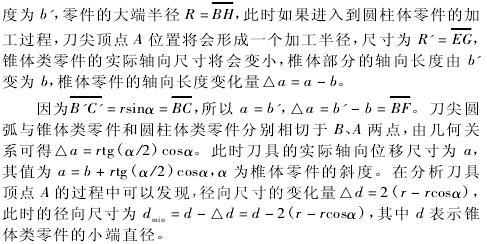 2 刀尖圆弧半径影响单段锥体类零件尺寸精度图 2 是单段锥体类零件的加工示意图。