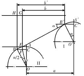 α、β分别表示第一段和第二段椎体的斜度,同时也可以直接得出第二段椎体零件的轴向尺寸变化大小△a2= EG = rcosβtg[( β - α) /2 ],零件的实际轴向位移尺寸 a