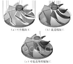 数控编程过程在 hyper MILL 中对整体叶轮加工的各个工序进行数控编程,其数控编程与加工的步骤如图 3 所示。
