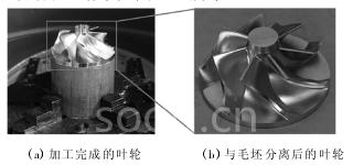 加工过程稳定,没有出现过切、欠切等现象。加工成后利用线切割将整体叶轮与剩余的圆柱毛坯分离,最终的加工结果如图 11b 所示