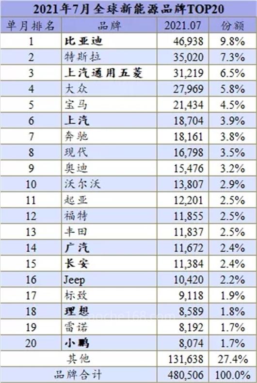 一个月前,在《上半年全球新能源销量:大众PK比亚迪,谁会是赢家?》一文中曾说大众与比亚迪之间你追我赶的胶着状态会持续到年底,7月的品牌榜再次证实这一点。