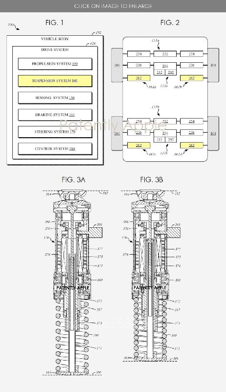 主动悬架执行器可以改变车辆的行驶高度。通过主动悬架致动器的连续操作,可以保持特定高度。此次苹果所获专利名为:带锁定结构的悬架系统。苹果发明称:在使用执行器和弹簧的主动悬架系统中,某些控制操作会使用长时间执行器压缩弹簧,例如当使用执行器降低车辆,以使乘客进出车辆时。