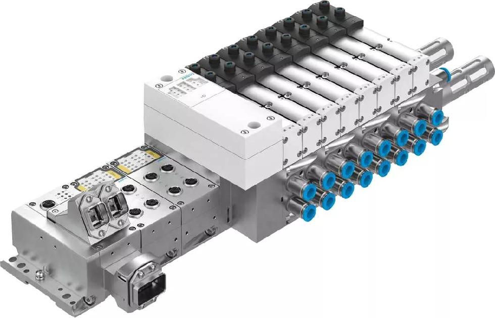 Festo分区控制安全模块,可应用在汽车制造的冲压车间、焊装车间、总装车间与电池和动力总成车间等环节的安全控制。原本分区控制依靠多套PLC搭配普通阀岛实现,而Festo分区控制模块采用单个阀岛,即可替代多套传统控制体系实现分区控制。