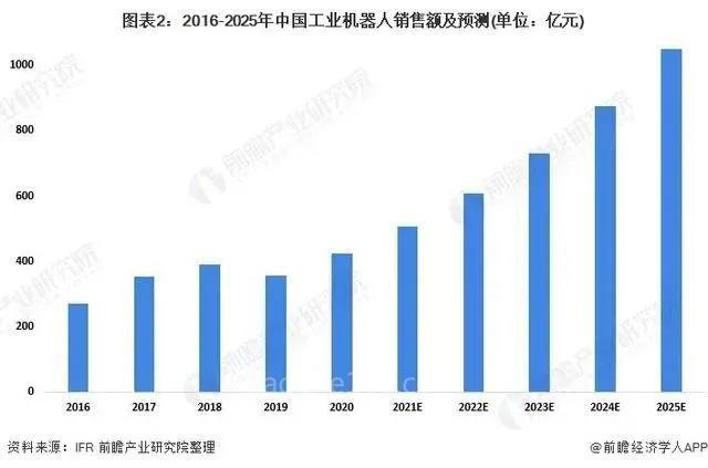 《规划》明确提出,力争到2025年,我国成为全球机器人技术创新策源地、高端制造集聚地和集成应用新高地,机器人产业营业收入年均增长超过20%,制造业机器人密度实现翻番。预计到2025年我国工业机器人销售规模将达到1051亿元左右。