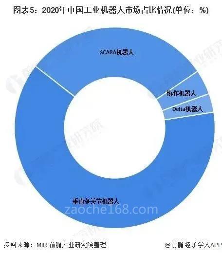 从机械结构看,据MIR统计,2020年垂直多关节机器人在中国市场中的销量在各机型中依然位居首位,全年销售总销量的63%;scara机器人全年销售占比为30%;另外,协作机器人与Delta机器人销售占比分别为4%与3%。