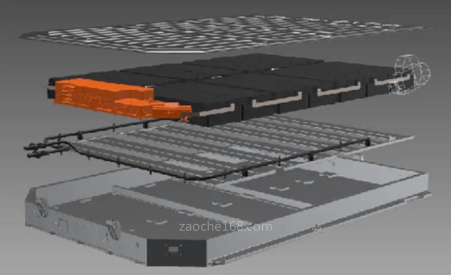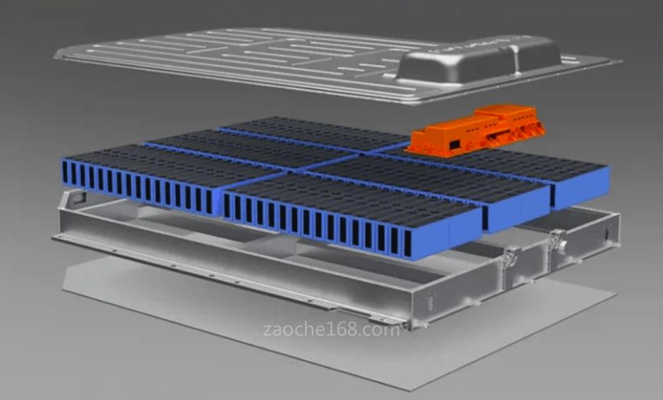 动力电池2.0时代(如上图),采用CTP大模组,电池组体积利用率提升15%-20%,零件数量减了40%,简化模组工艺,让生产效率提升50%;缺点:由于CTP大模组电芯胶粘到电池包底盘,电芯损坏时返修难度大,不能像模组电池包,可定位特定模组进行单个模组的更换,售后维修性差。